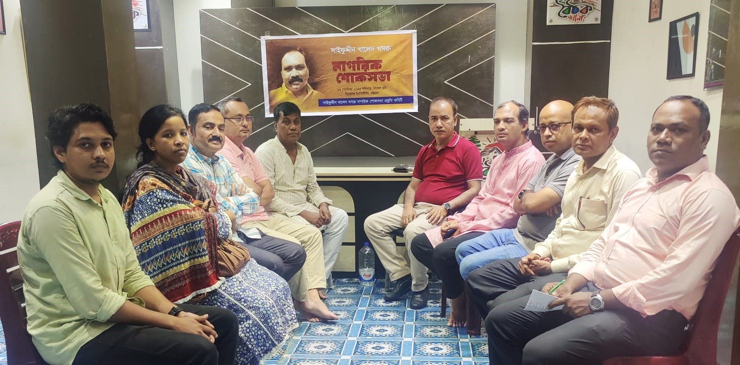 প্রগতিশীল আন্দোলনের কর্মী ও বিশিষ্ট পেশাজীবী সাইফুদ্দিন খালেদ খসরুর স্মরণসভার প্রস্তুতি সভা অনুষ্ঠিত হয়েছে। মঙ্গলবার বিকালে নগরীর চেরাগী পাহাড় মোড়স্থ বৈঠকখানা কমিউনিটি হলে এ সভা আয়োজন করে নাগরিক কমিটি।