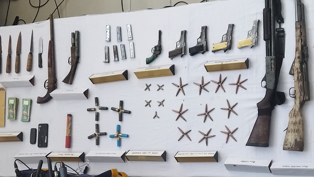 চারটি বিদেশি পিস্তল, একটি রিভলভার, একটি চায়না রাইফেল, একটি শটগান, সাতটি ম্যাগাজিন, ৮৫ রাউন্ড গুলি, শর্টগানের ১৭ কার্তুজ, দুটি রামদা, একটি রকেট ফ্লেয়ারসহ ইয়াবা ও গাঁজা। এসময় সাকিব ও শাহেদ নামে আরও দুজনকে গ্রেপ্তার করা হয়।